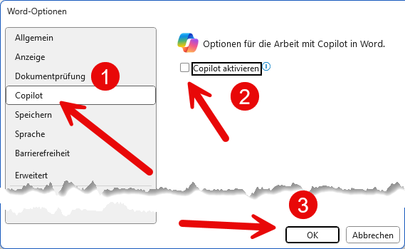 Copilot und KI-Vorschläge in Word (M365) ausschalten.